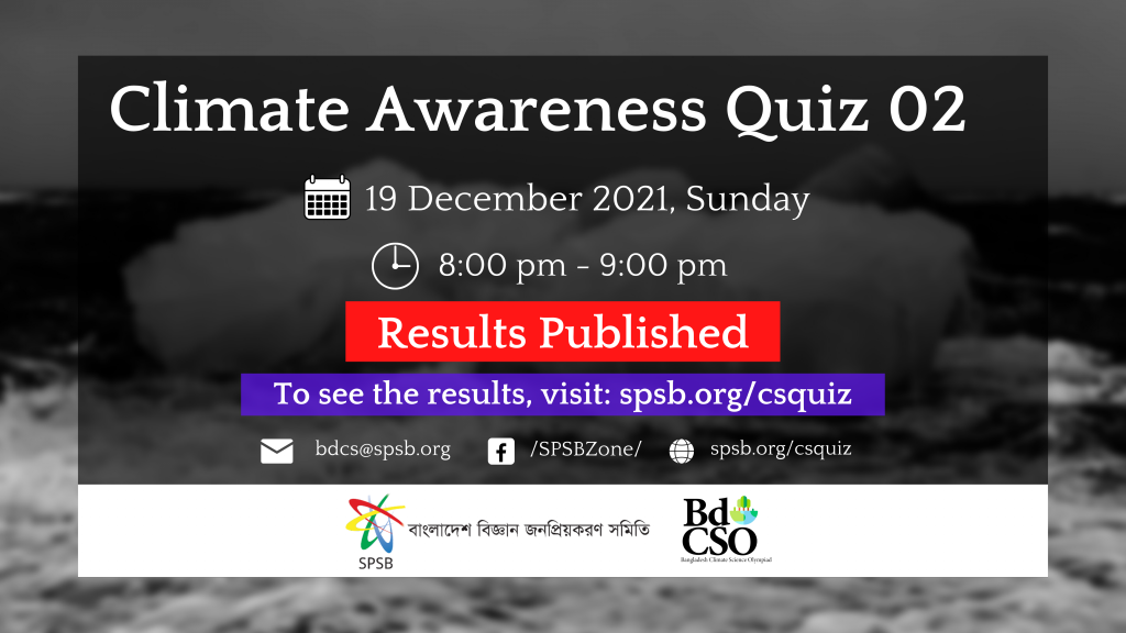 “Climate Awareness Quiz 02” শীর্ষক জলবায়ু সচেতনতা বিষয়ক অনলাইন কুইজ প্রতিযোগিতার ফলাফল